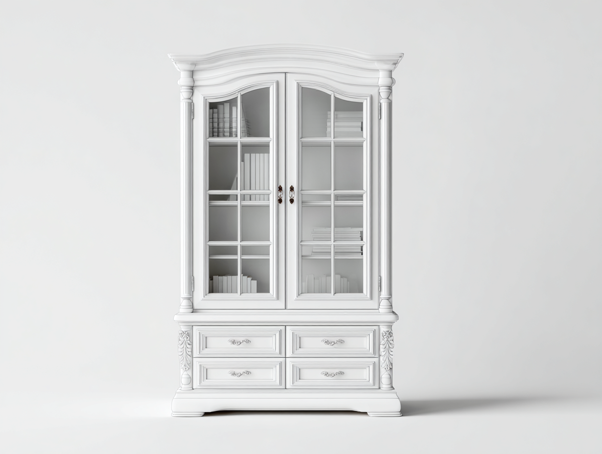 Vitrine avec portes vitrées et tiroirs intégrés 120x45x200 cm - blanc - style classique